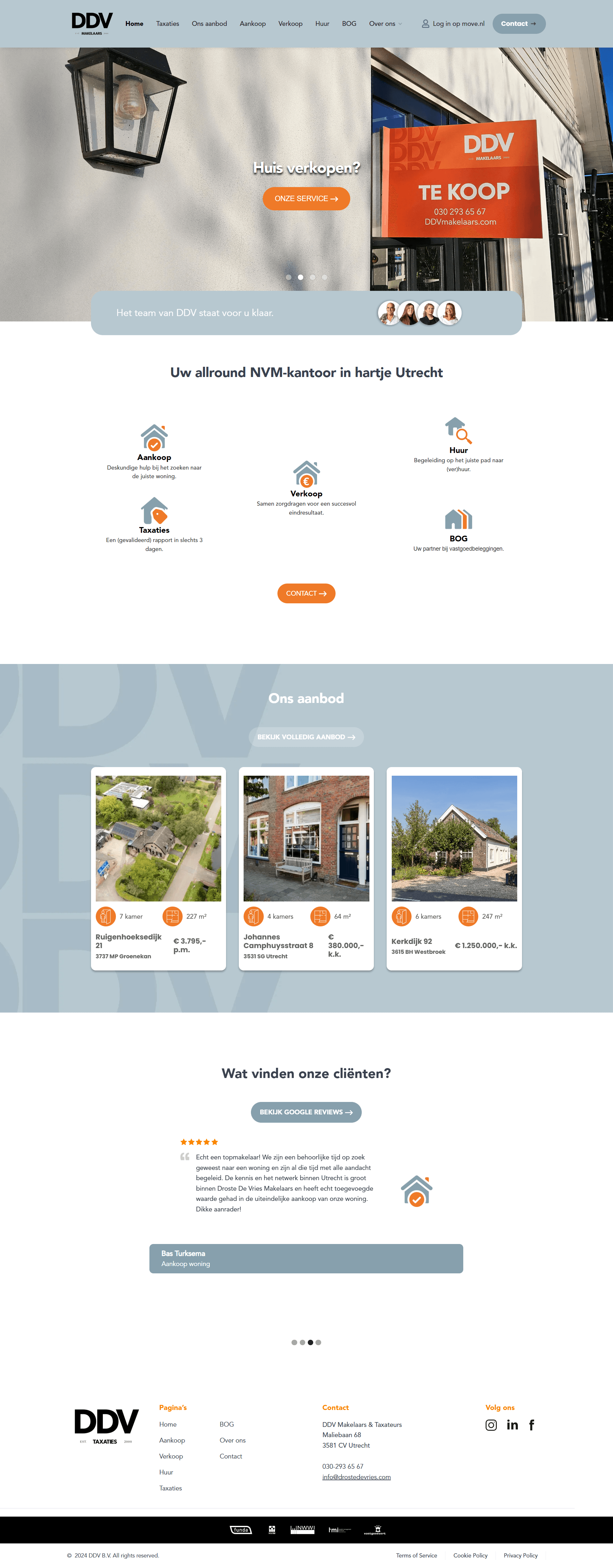 Voor DDV Makelaars heb ik een uitgebreide website ontwikkeld als onderdeel van hun rebranding. Ze hadden een vernieuwde online aanwezigheid nodig die aansloot bij hun nieuwe merkidentiteit.
